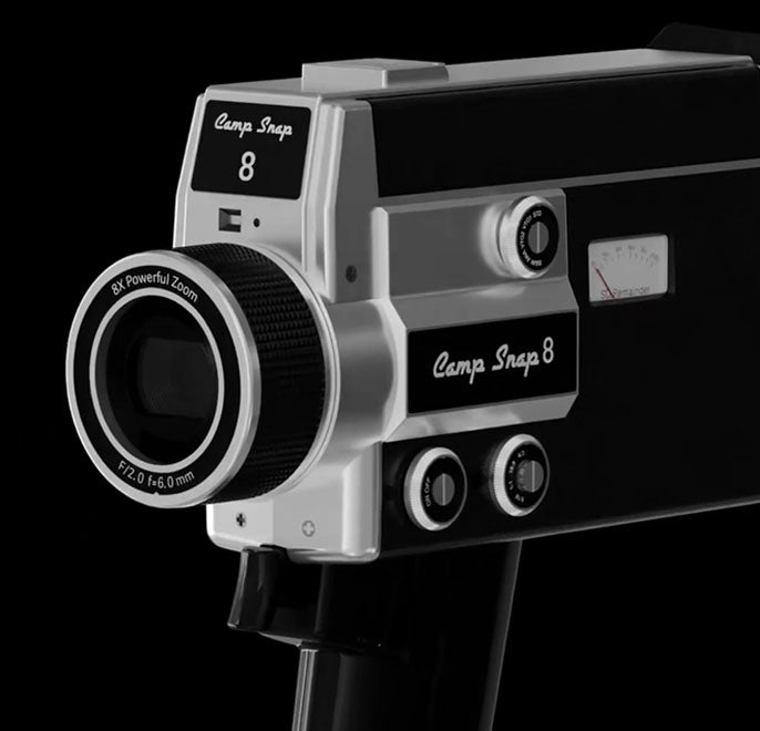 The CS8 is a is a Super 8-inspired digital camera that captures video with built-in vintage film effects, giving your memories a nostalgic, analog feel—without the hassle of film or a playback screen!